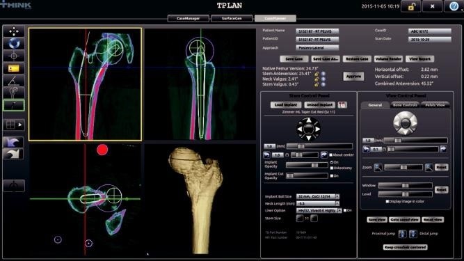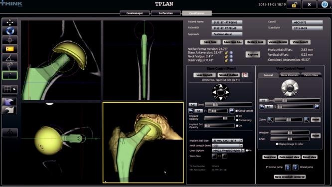 Ο προχειρουργικός σχεδιασμός αρχίζει όταν το TPLAN μετατρέπει την αξονική τομογραφία του ισχίου του ασθενούς σε ένα τρισδιάστατο μοντέλο επιφάνειας του μηριαίου οστού. Ο χειρουργός επιλέγει ένα κατάλληλο εμφύτευμα και το τοποθετεί κατά μήκος των αξόνων του οστού με τη βοήθεια ανατομικών landmarks.
